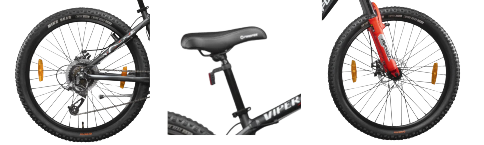 The Viper’s design keeps comfort in focus with an ergonomic saddle and upright geometry that reduces back strain on longer rides. The steel frame’s natural damping helps soften small bumps, while the suspension fork with around 80mm of travel absorbs bigger shocks on off-road stretches.