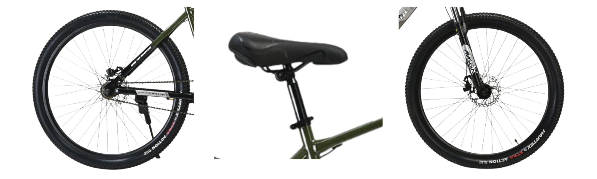 The Dominator 27.5 is equipped with dual mechanical disc brakes, delivering confident stopping power and control in all weather conditions. The braking system performs reliably across dry roads, dirt tracks, and wet conditions, ensuring rider safety and consistent control.