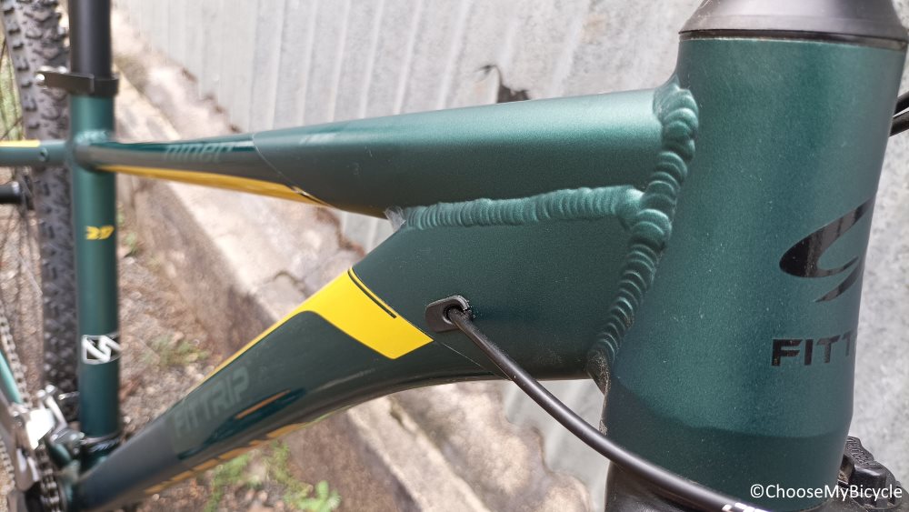 The FitTrip Niner 29 which we test rode came in a Green primary colour on the frame with Gold as the secondary colour for graphics. The matte finish paint job along with the gloss decals enhanced the colour scheme to make it look shining. The internal cable routing made the Bicycle look neat and the colour coordinated rims and fork made this Mountain Bike look aesthetic.
