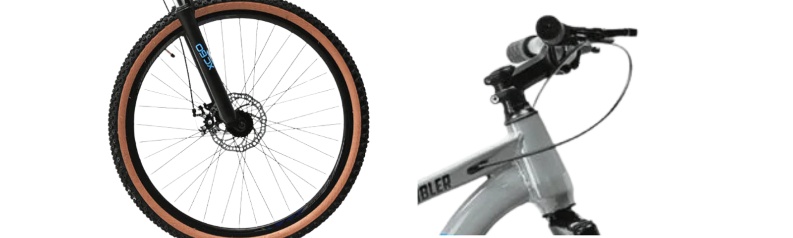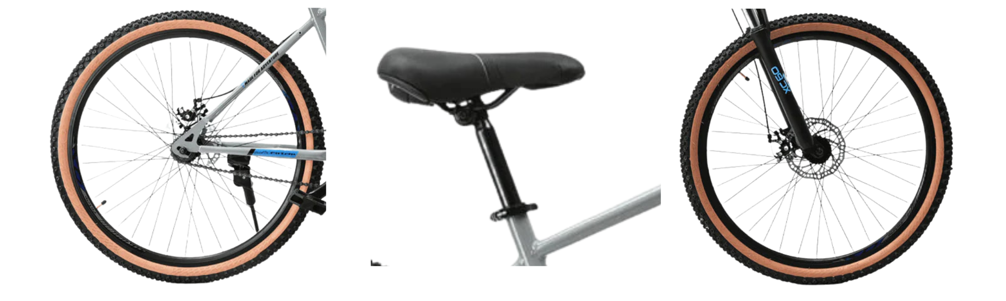 The 27.5” double-wall alloy rims provide durability and responsiveness, ensuring a smooth roll with minimal flex. These wheels are matched with all-terrain tires that maintain grip and control on both pavement and gravel.