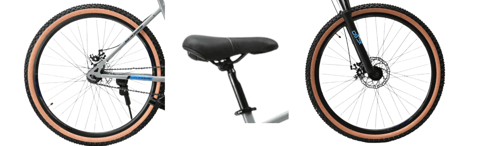 The large 29×2.10 tyres are among the highlights of this bike. They provide superior traction and smoother roll-over on obstacles — potholes, curbs, or trail stones. The double-wall alloy rims enhance durability while keeping the weight manageable.