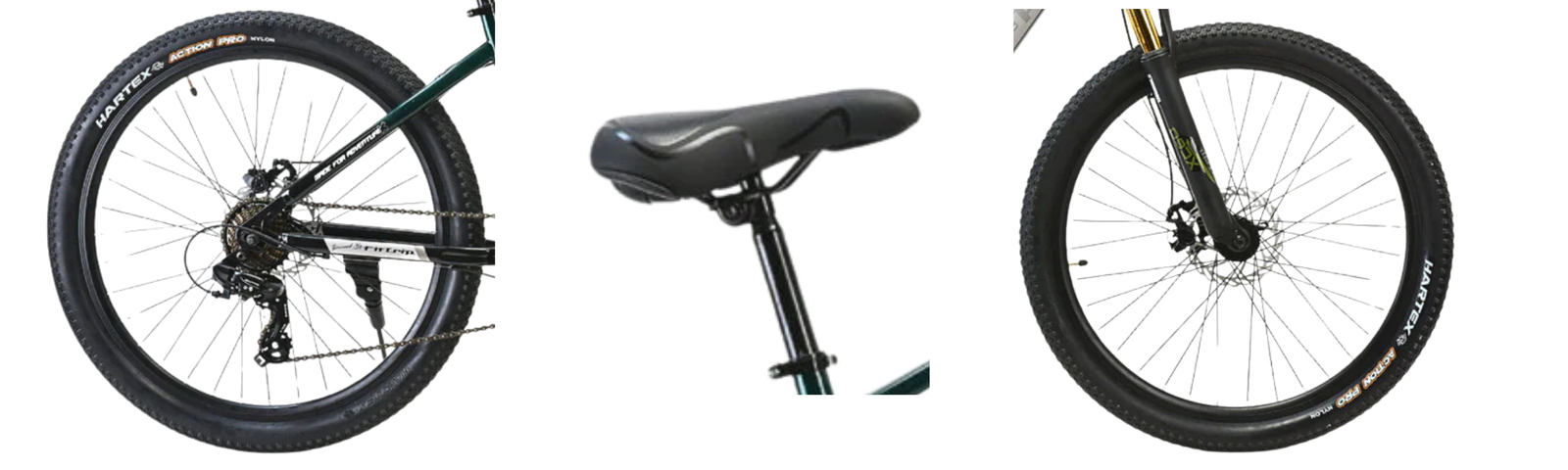 Double-wall rims are likely (given price level) and hubs are basic but serviceable. The saddle is standard and for shorter to moderate length rides it is fine; longer rides may prompt an upgrade.