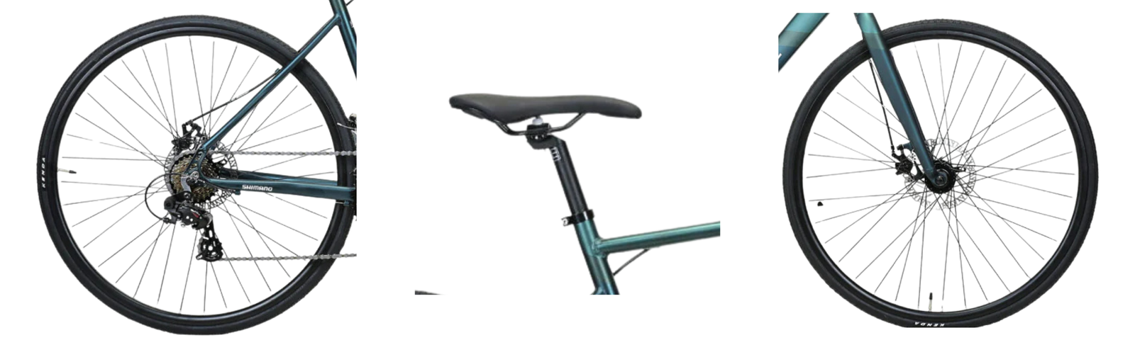 Comfort is managed through the bike's choice of components. The frame geometry provides a suitable posture for long rides, while the Alloy Dropdown Handlebar allows riders to switch hand positions to reduce fatigue. The saddle is a Performance Saddle, which is typically firmer and more supportive than plush, comfort-focused saddles. The 700×25C Kenda tyres are fast and responsive, but their narrow profile means the rider will feel more of the road's imperfections compared to the wider 28C or 32C tires found on many endurance bikes.