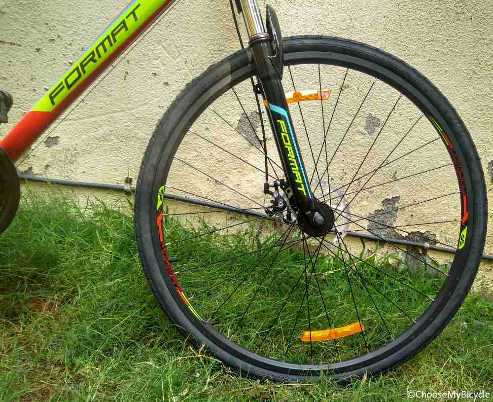 Bright, Eye-catching and a total standout – a few thoughts that come to mind to describe the design of the Format SIN21. When it comes to the design department, this bicycle makes a bold statement. The usage of bright colours on the frame is refreshing. This bicycle is sure to grab attention while on the road. The bicycle we tested had a red frame with bright yellow and blue decals and branding. The paint finish on the bicycle was of high quality. The minimal branding added to the aesthetics of the bicycle. This bicycle is available in two colour options – Red/Yellow and Yellow/Blue.