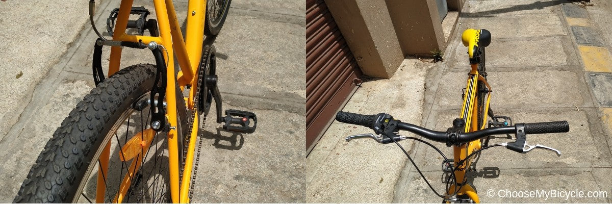 The Frog Alphacity 7S 26"" comes equipped with Power V-brakes at the front and rear that offer adequate stopping power for city use. The brakes were powerful and strong while tested. However, additional stopping power might be required while on wet and slippery surfaces. The handlebar on the Frog Alphacity 7S 26"" is wide enough to ensure a comfortable upright riding position. The width of the handlebar allows for superior control and maneuverability in crowded riding conditions. The handlebar grips felt slightly hard while on the test ride.