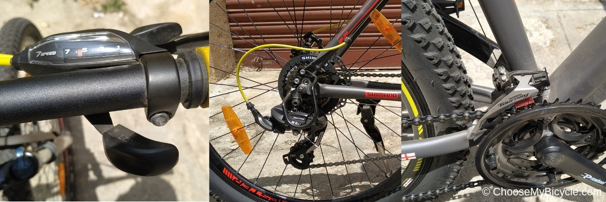 A 21-Speed MTB equipped with Shimano Tourney front and rear derailleurs