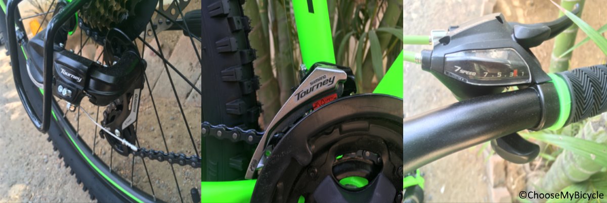 The Shimano Tourney 21-Speed derailleurs were sufficient for quick gear shifts on short rides