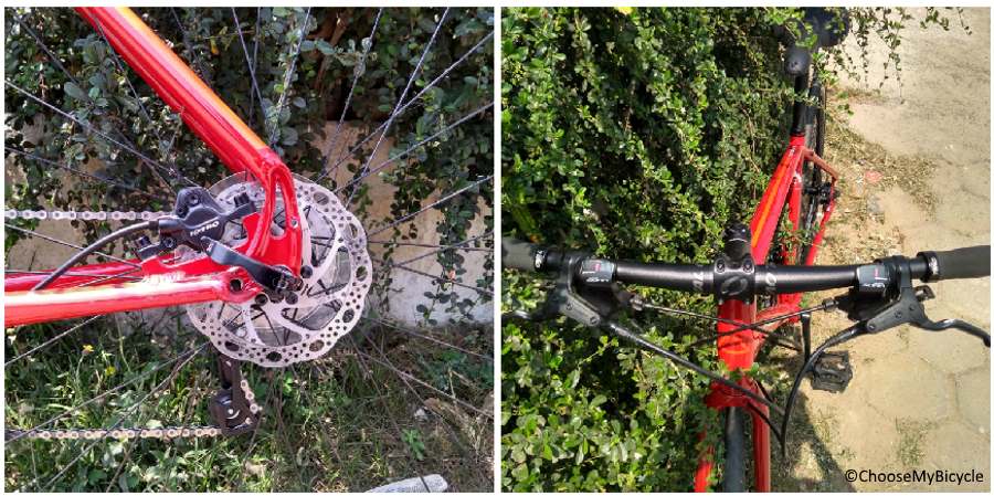 The Fuji Absolute 1.3 comes equipped with Tektro Auriga Hydraulic Disc Brakes with a 16mm rotor in the front and 14mm rotor at the rear. The braking was found to be precise and effective when tested out on wet and dry surfaces. The stoppage power is adequate and responsive enough to bring the bicycle to a complete halt when required. The Tektro Auriga 2-finger brake levers were well placed, and required a light press to engage the braking mechanism. This bicycle comes equipped with an Oval Concepts flat handlebar made using alloy. The width of the handlebar enables an open-chested riding position, and ensures superior control, stability and maneuverability.