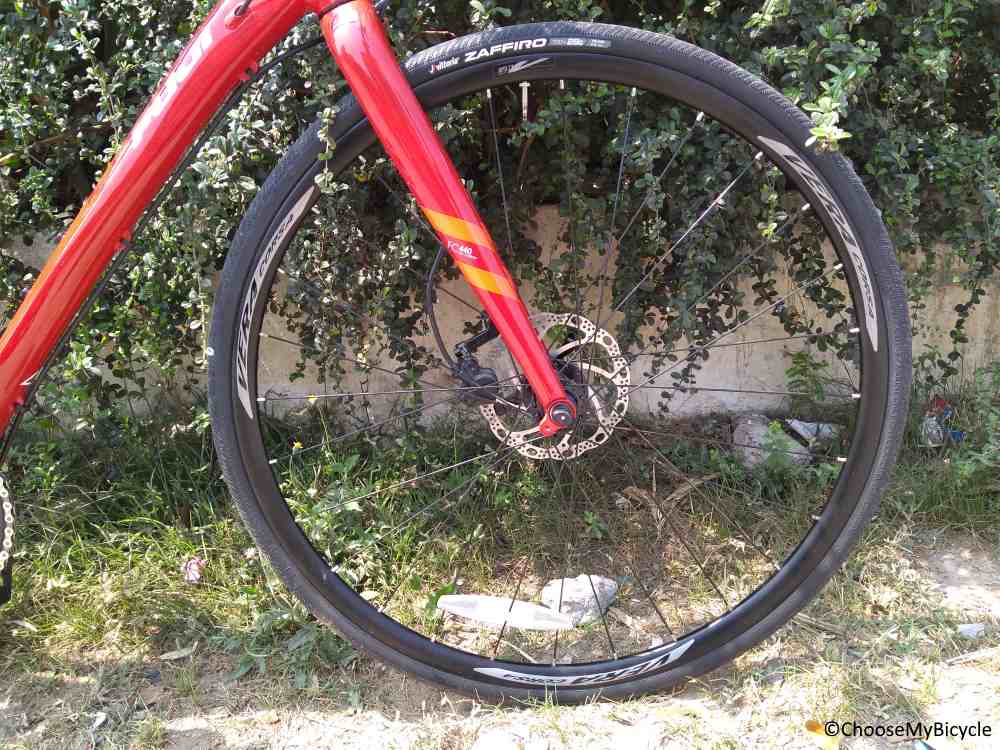The Fuji Absolute 1.3 comes equipped with Vittoria Zaffiro 7x28C tires. The tires are fast rolling and the lightly treaded tires enabled superior gripping, around corners and on wet and slippery surfaces.This bicycle comes equipped with a Selle Royal Shadow saddle which I found to be well cushioned, and comfortable even on long distance rides.