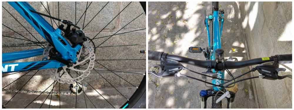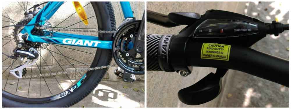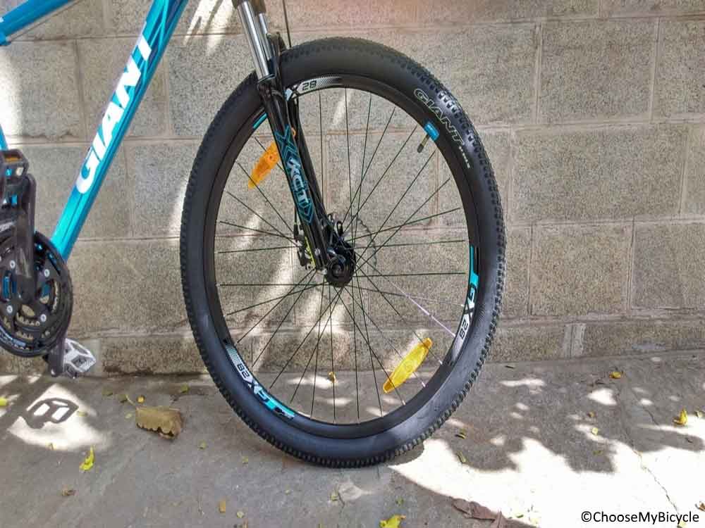 The Giant ATX 1 217 is an MTB designed to be used on city roads and off roads, on-trails and paths as well. Made using ALUXX- grade butted aluminium, the frame is durable and lightweight. Aluminium as a material provides sturdiness to the bicycle frame. The geometry of the frame ensures for a relatively upright, comfortable riding position, with supreme control of the bicycle. The frame has two provisions for bottle holders to be mounted. However, on extreme trail rides, they could be prone to dirt and dust due to the positioning. The Giant ATX 1 27.5,217 comes with SR Suntour XCT suspension fork, with 1mm travel. During the test ride on bumpy roads, the 1mm travel proved effective in absorbing the shock felt from bumps, semi-paved roads and potholes.