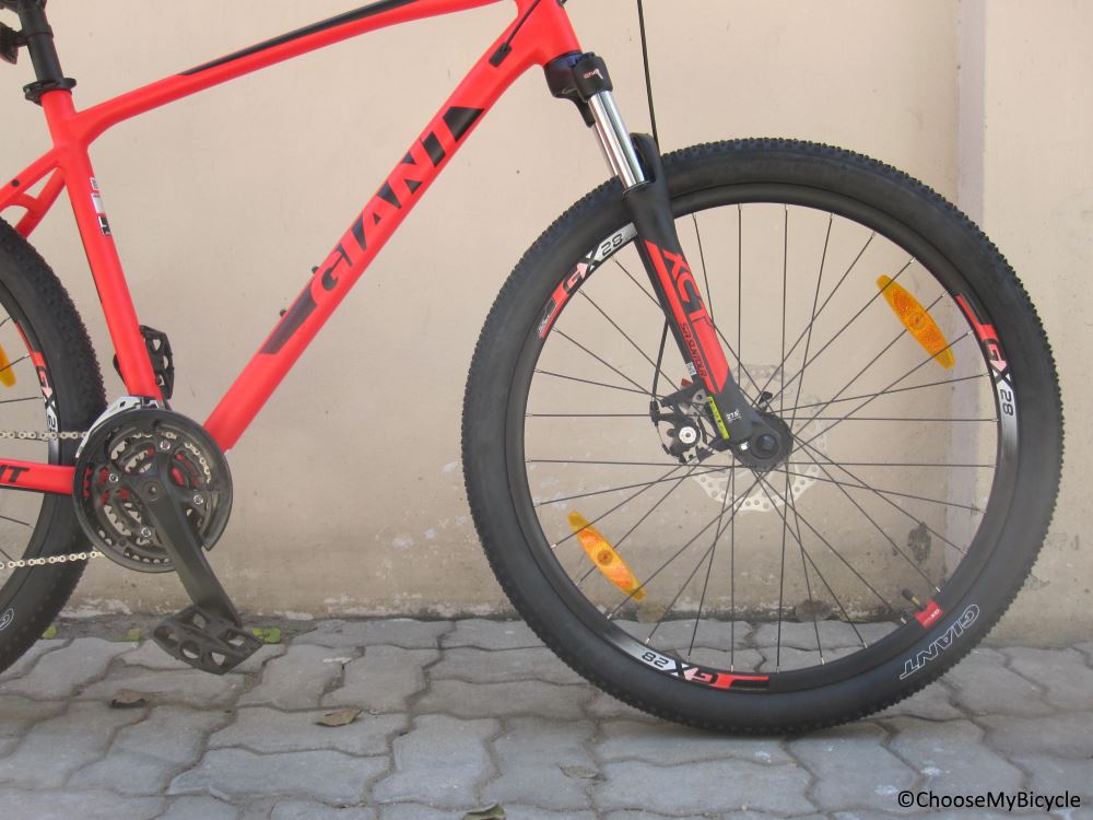 Giant is known to keep experimenting with their designs and colours. The ATX 1 which I test rode came in a bright red colour with black graphics mainly for the logo and model name. The matte finish paint job was of top quality and gives a smooth outlook to the frame. The matching red colour graphics on the rims and suspensions forks made the bicycle look colour coded.