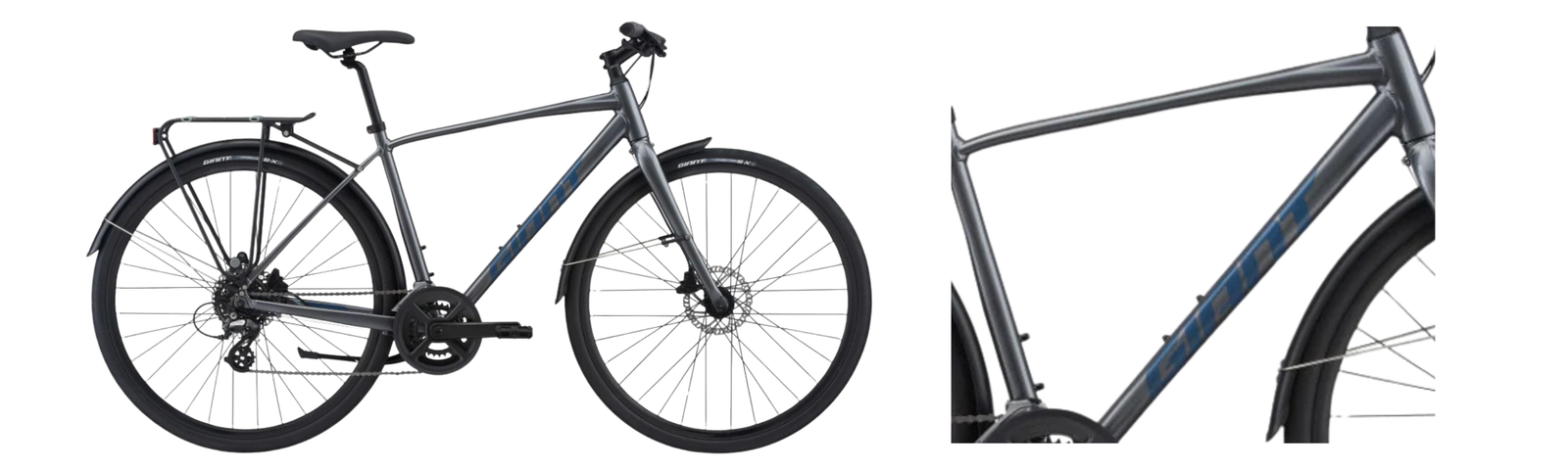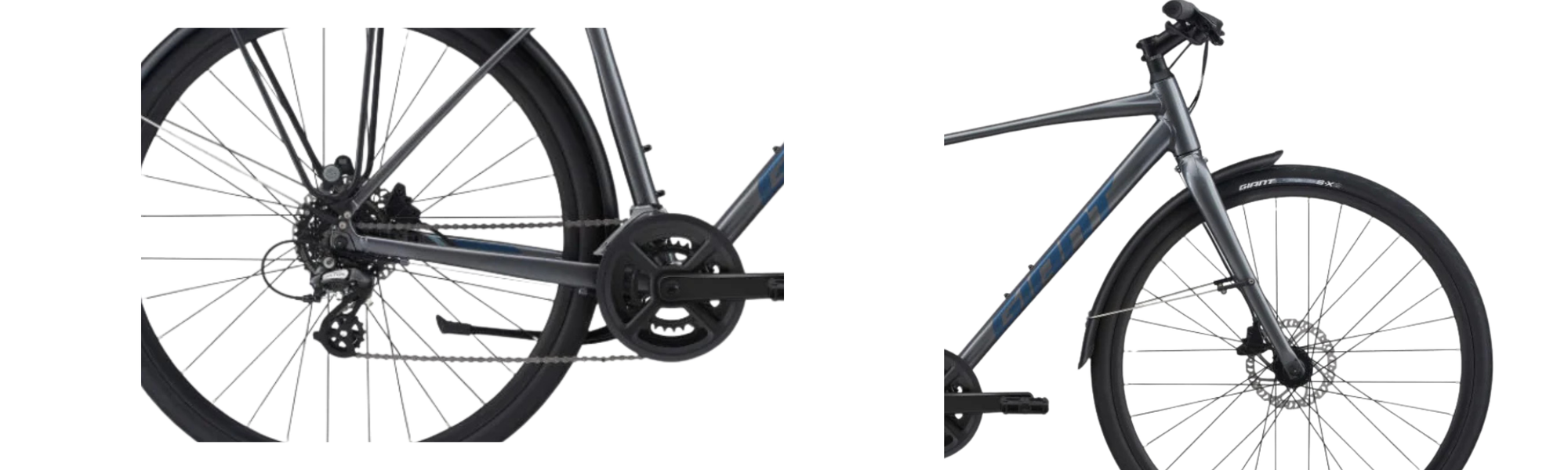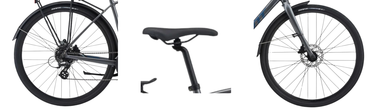 The bike rides on robust Giant double-wall alloy rims paired with 700C hybrid tires designed for pace and comfort. These wheels roll fast, stay stable over bumps, and grip confidently on mixed surfaces.