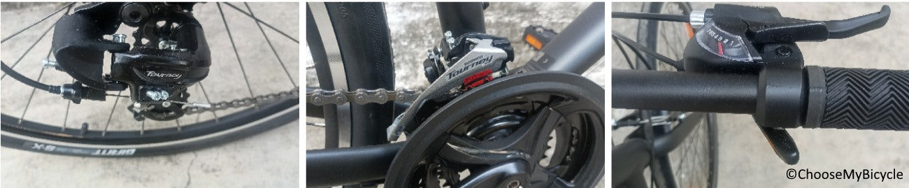 The 21-Speed Shimano Tourney drivetrain was perfectly suited for urban riding.