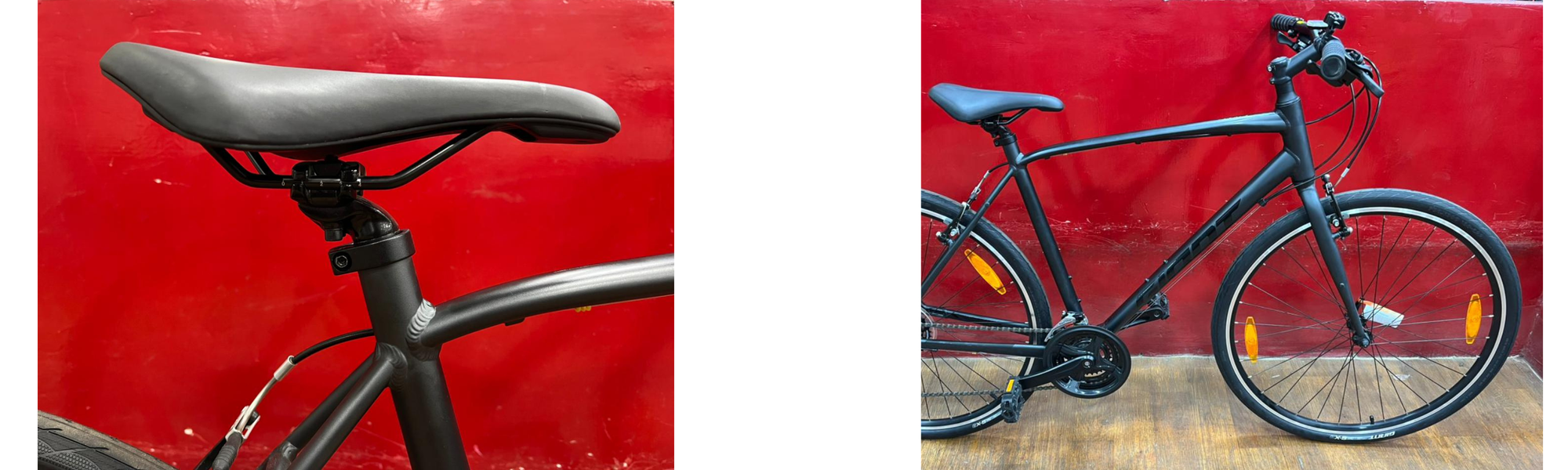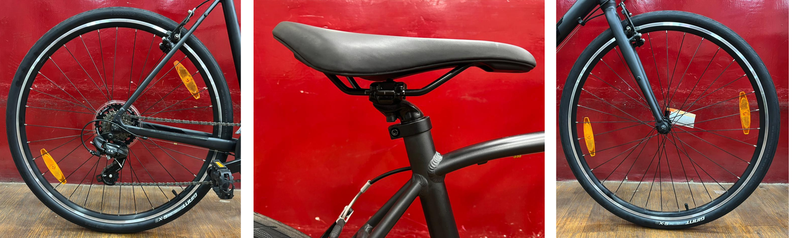 The saddle is a “Giant Sport Comfort” — ergonomic and supportive without being overly plush, which matches the bike’s fitness / commuter ethos.