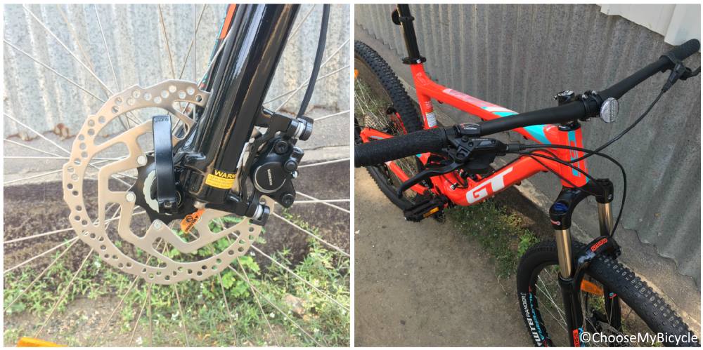 The GT Verb Elite is built on a T6 Aluminium full suspension frame. This frame has a modern geometry with the perfect length to have the rear shocks in it. The geometry also allows for higher ground clearance and better stand over clearance as well. This makes sure the rider and bicycle is safe when pedaling over the roughest of trails.The SR Suntour XCR32 front suspension fork comes with a 12mm travel. This massive travel worked smoothly and the manual suspension lockout helped making the fork rigid and hence accelerates faster on flatter surfaces. The GT All Terra air shock suspension with a rebound controller enables easy landing on downhill trails.