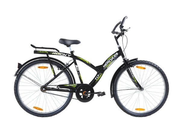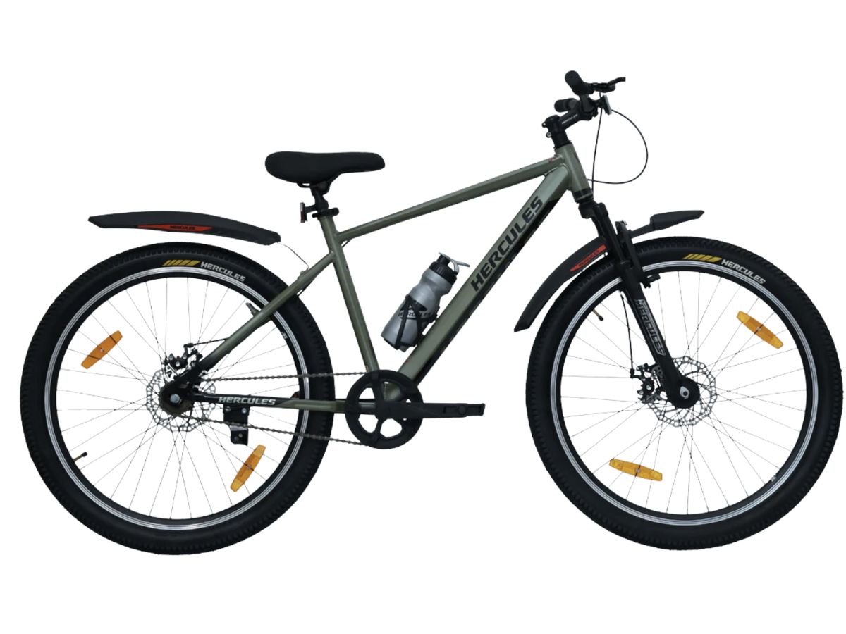 Engineered with a sturdy steel frame, the Hercules Rogue embraces durability while remaining accessible to a wide range of riders (13+). “Built tough with a steel frame, the Rogue inspires confidence from the very first glance.” The inclusion of front suspension smooths out bumps and rough patches. Visually, it’s available in striking colors—Aquatic, Burnt Orange, and Frost Grey—adding a splash of personality to its rugged silhouette.