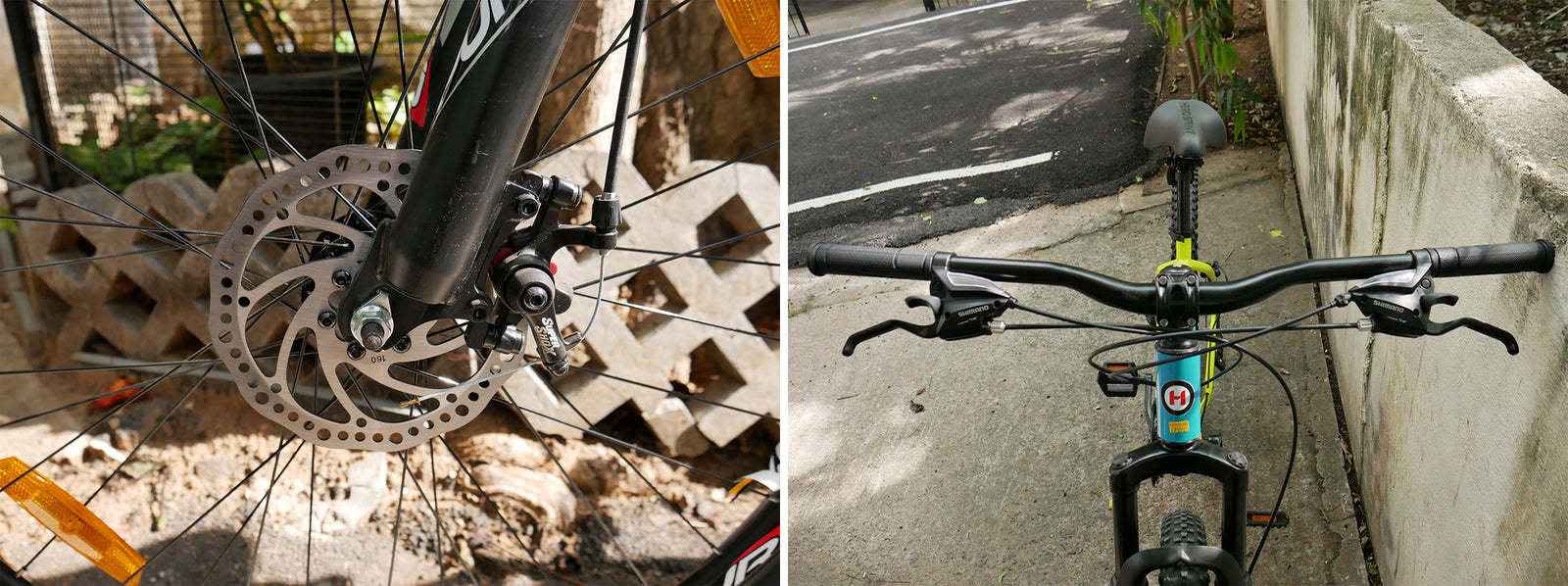 The Hero Blunt comes with mechanical disc brakes with 16mm rotor size and callipers are from Super Shox. The brake had good bite when both were used together. Just the rear brake was not sufficient to bring the bike to a halt but while using the front brakes the bike dives forward and the suspension travels at least halfway, making it a little getting use to. This is where the wide handlebar comes in handy to keep yourself anchored. The bike handles really well, and it was very easy to tackle the traffic