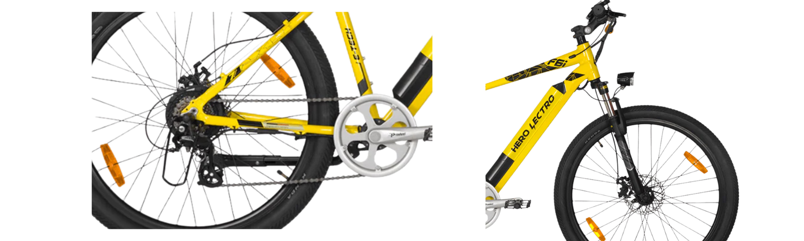At its core, the Hero Lectro F6i features a lightweight 6061 alloy frame built for strength and agility. The design integrates the lithium-ion battery neatly into the downtube, maintaining a clean, premium aesthetic that doesn’t scream “electric.” The compact 27.5-inch wheel setup strikes an excellent middle ground between nimble handling and ride stability.
