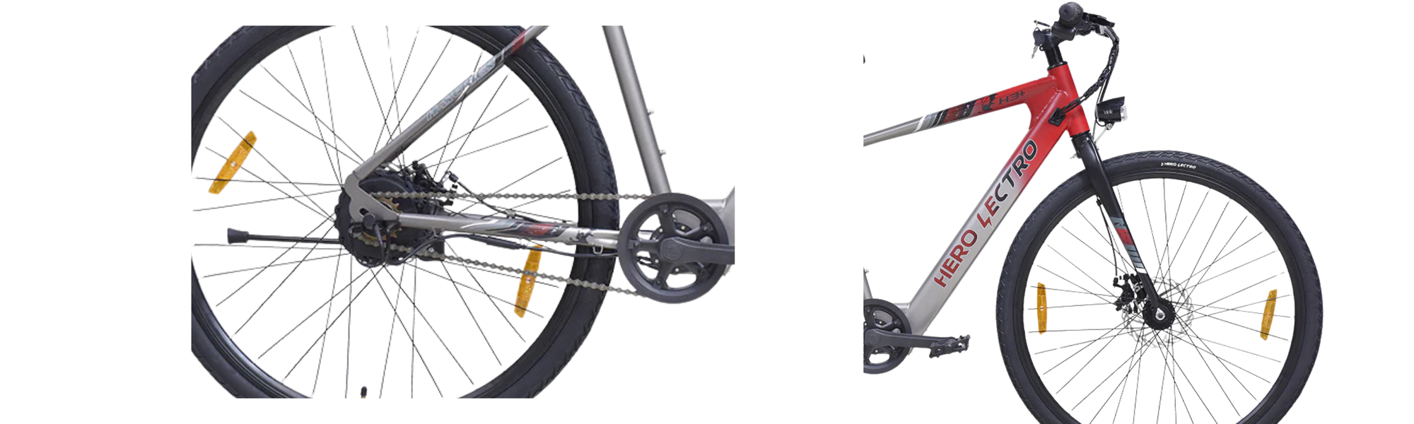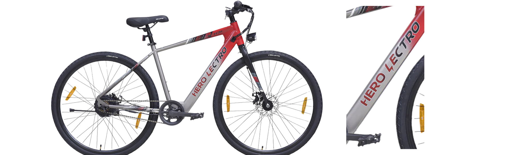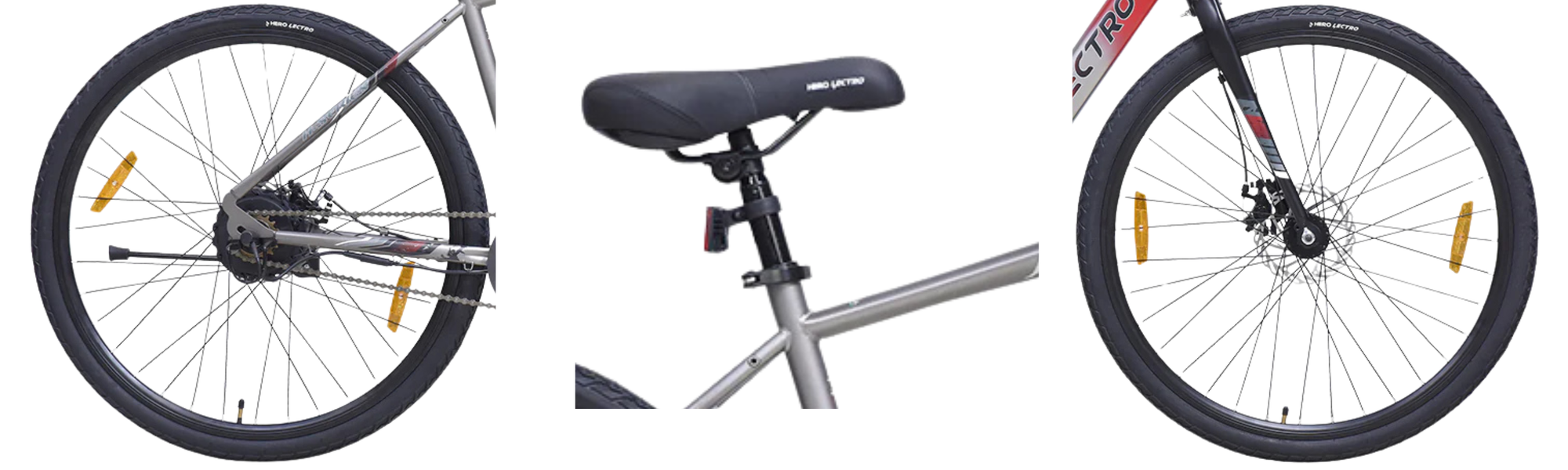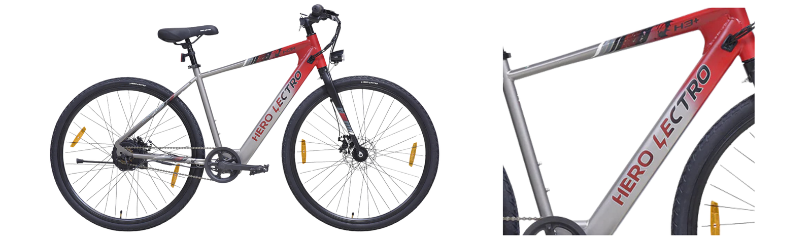 At the core of the Hero Lectro H3+ is a lightweight alloy frame, engineered for strength and everyday practicality. The frame features a low-slung top tube that makes mounting and dismounting easier ideal for urban stop-and-go riding. Its geometry leans toward relaxed hybrid ergonomics, allowing riders to maintain a comfortable upright posture during long commutes.