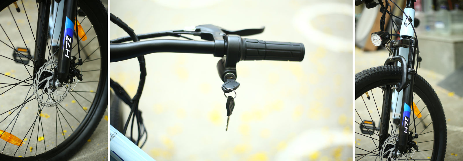 Hero Lector H7 Sigma comes with STEEL FRAME WITH WATER Transfer DECALS and has an exceptional strength-to-weight ratio. Unisex Frame along with its unique Frame design, H7 is compatible primarily includes all users' ride requirements making it a sleek look.Sturdy Steel frame designed to keep the bike normal weight while accommodating the battery. Frame geometry slightly tapered top tube hard tail steel frame comes with internal cable routing. Frame size 17.5 inches suitable for people with 5.5 to 5.9 ft height. In-built handlebar rotation arrester to prevent break and other cable damage.