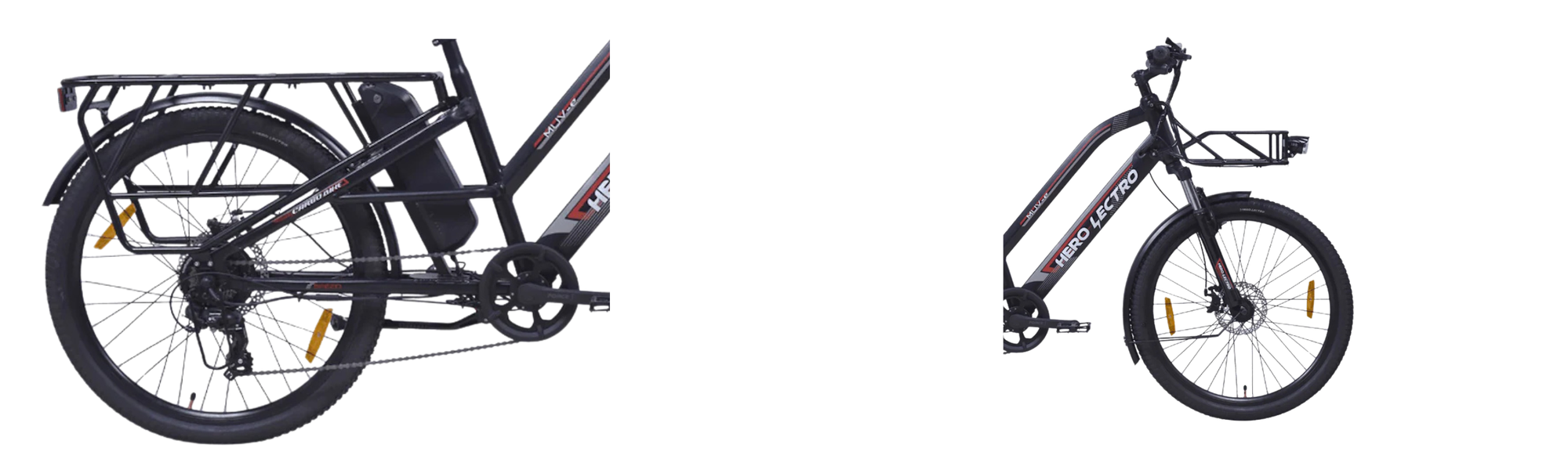 The Hero Lectro Muv-E offers a claimed range of 60–70 km on a full charge, making it well-suited for cargo-style or utility urban rides.