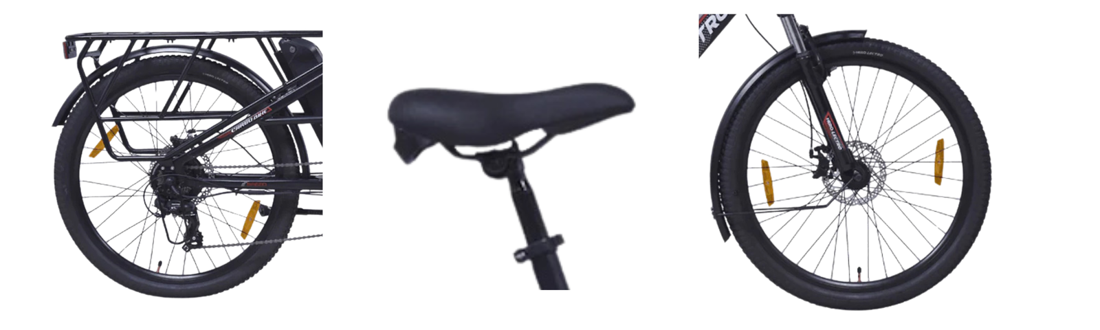 Saddle & components: The saddle is fairly standard for the category—adequate for commute and utility; may not match ultra-premium comfort but fit + positioning matter.