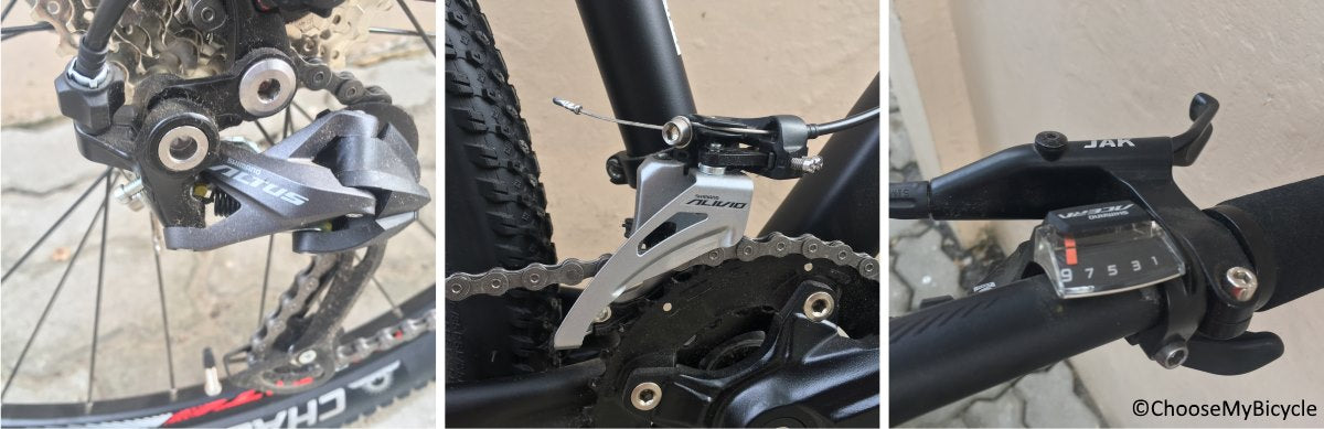 The Shimano Alivio/Altus 18-Speed drivetrain is performance-focused and meant for the trails