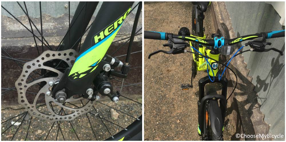 The bicycle which I test rode came in a Baa Yellow frame colour with Black and Blue graphics. The fluorescent primary colour was bright and had a smooth matte finish paint job. The blue gear cables, part blue on the stem, blue grips and yellow saddle made sure there is uniformity in the design which definitely made the bicycle stand out in a crowd.