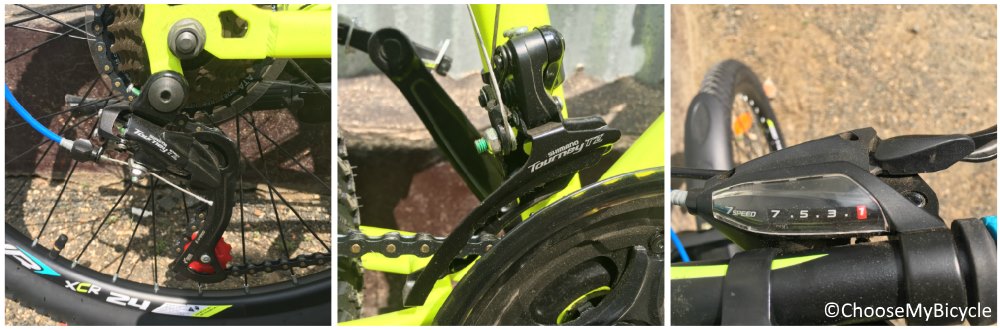 The 21-Speed Shimano TZ drivetrain shifted smoothly without any lags