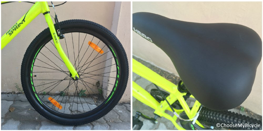 The Hero Sprint Squad rolled on a pair of Ralson branded Micro Octave 26” x 2.1” tires. These tires with its 26” circumference were fast rolling while the 2.1” width provided enough traction for safe riding on both wet and dry urban roads. The PU Saddle on this bicycle has perfect cushioning to keep the rider soreness free even on bumpy roads.