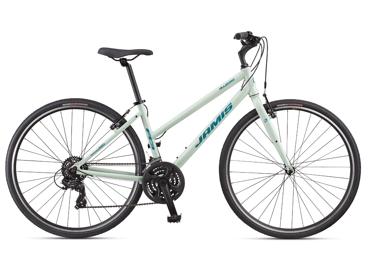 Allegro means “at a brisk speed”, which characterizes all Allegros . It upholds the spirit of fitness bikes that are lively, quick and a fun bikes to ride. It has efficiency of road bikes combined with an upright riding position which many people prefer.