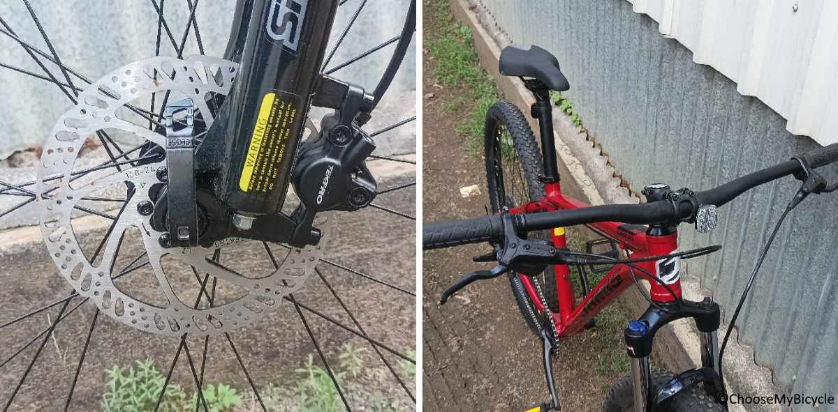 The Tektro Hydraulic Disc brakes were powerful and the 74mm lengthy handlebar was perfect for trail riding