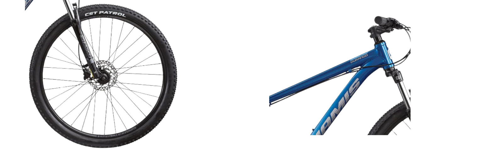The Jamis Durango A2 is a versatile mountain bike built for riders who want dependable performance for everyday trail rides and fitness cycling. With a strong alloy frame and Shimano drivetrain, it strikes a balance of practicality and fun.