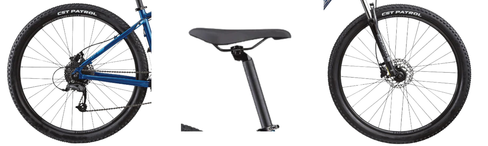 The Shimano 24-speed drivetrain offers a broad range of gears, making climbs, flats, and rolling trails manageable. Shifting feels smooth and predictable, giving riders dependable performance without complication.