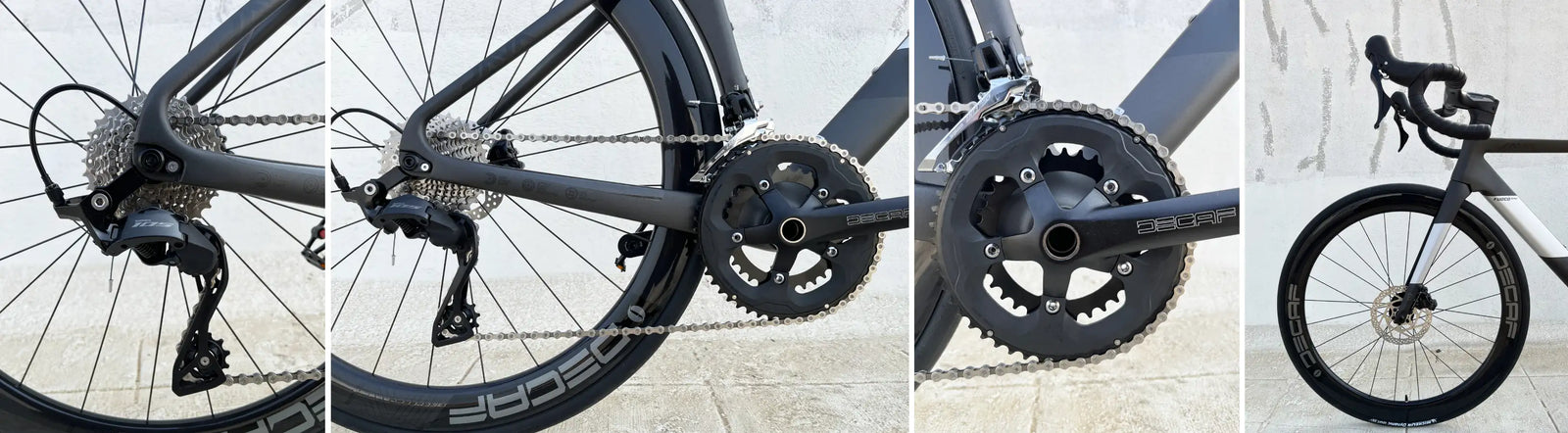 A comfortable and smooth ride is ensured by the carbon fibre frame and fork, which efficiently reduce vibrations from uneven roads. By optimizing the frame shape to balance endurance and aerodynamics, riders can stay in a strong riding position without sacrificing comfort. The carbon seat post also helps absorb shocks, which lessens fatigue during long rides.