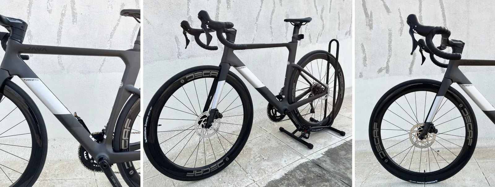 The Java Decaf 50mm deep-section carbon wheelset that comes with the Fuoco Top is intended to increase rolling speed and aerodynamics. These wheels are perfect for racing conditions because they strike a mix between stability and lightweight performance. These 700x28C tires offer excellent comfort and traction on a variety of road conditions. Although the Java Deca Road saddle guarantees respectable comfort, some cyclists may decide to upgrade for longer trips.