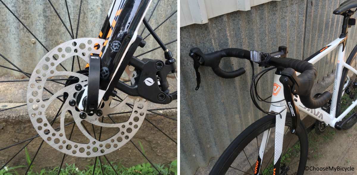 Deca's Mechanical Disc brakes handle the braking power on the Siluro 3D. These brakes were lightweight components and powerful on flat tarmacs and balanced on even wet roads.The stock drop handlebar was of the perfect length for optimum control over the Bicycle on steep turns and also gives a compact riding posture.