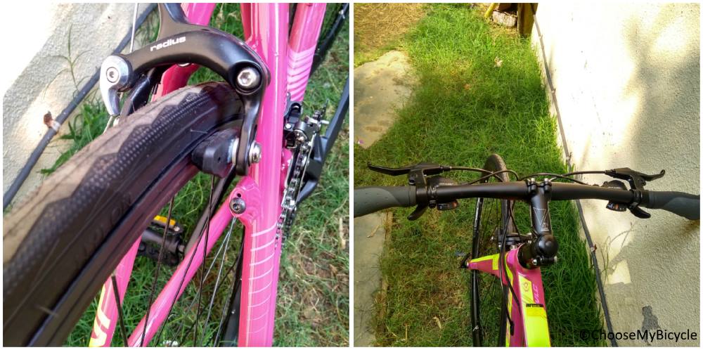 The Java Veloce Flatbar comes equipped with a Shimano Sora Rear Derailleur and a Shimano Claris Front Derailleur. This 18-Speed bicycle is a mean machine when on the road, tackling climbs and flat roads with ease. The shifting was lag-free, it should be considering it is after all Shimano Sora enabled – which at this price point is impressive. The 18-Speed shifting is controlled by Shimano Sora Shifters which require the slightest click to shift.