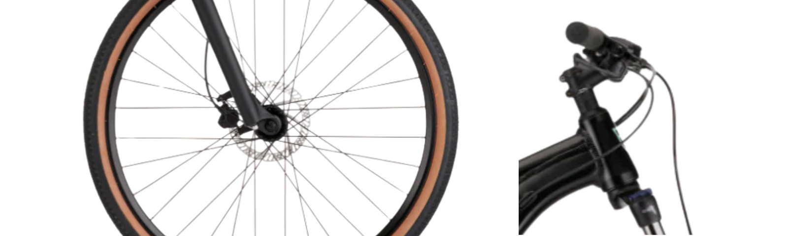 Suntour NEX 80mm suspension fork absorbs bumps and road vibrations. Kona Crosstrail saddle provides supportive comfort. Wide tyres improve stability and ride smoothness. Ergonomic Kona Key grips enhance hand comfort. Upright posture reduces fatigue during longer rides. Designed for comfortable mixed-surface riding.