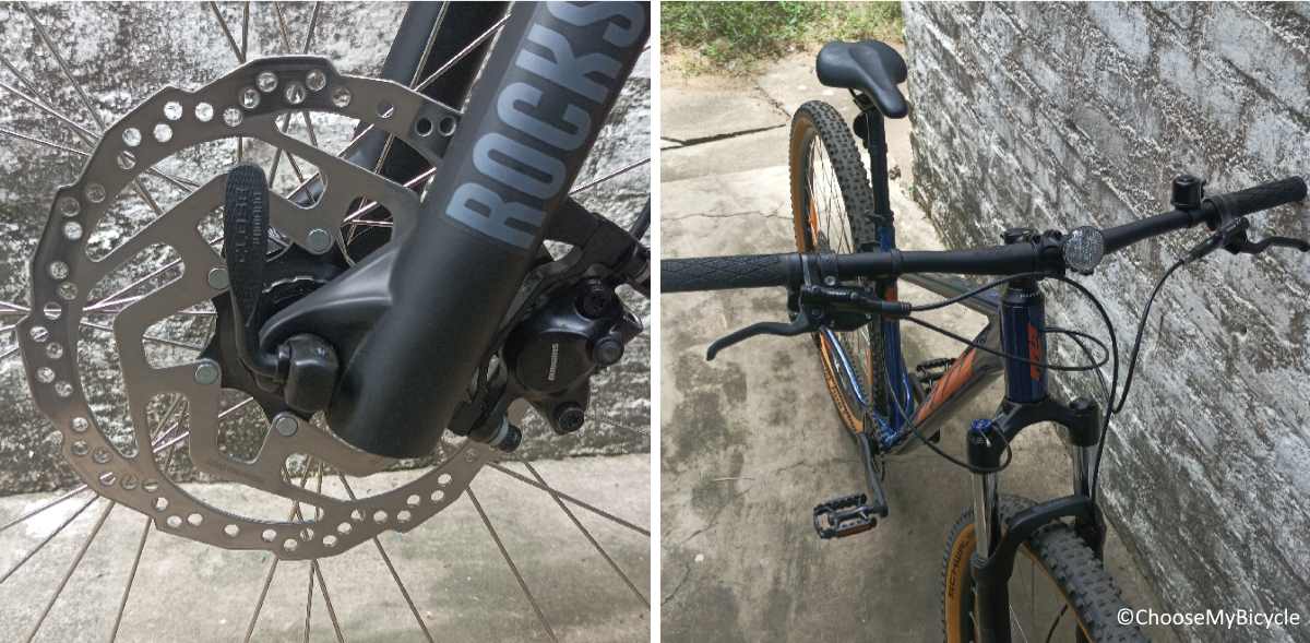 The Shimano MT2 Hydraulic Disc brakes were as powerful as it can get on a performance focused Hardtail MTB such as this KTM Bicycle. During the test ride, these brakes were not just powerful but also balanced on wet trail surfaces. The brake levers required only 2 or 3 fingers to engage the brakes.The 72mm KTM Line Rizer handlebar was lengthy and perfectly suited for fast trail rides. That being said this handlebar's length makes it uncomfortable for those tight maneuvers.
