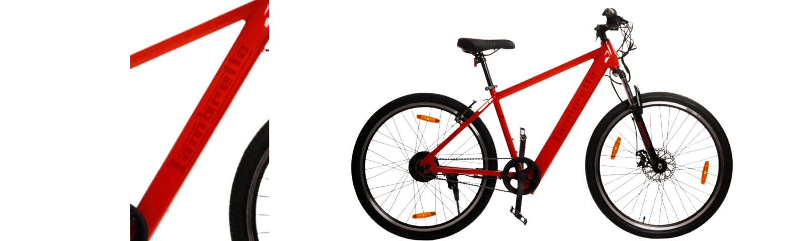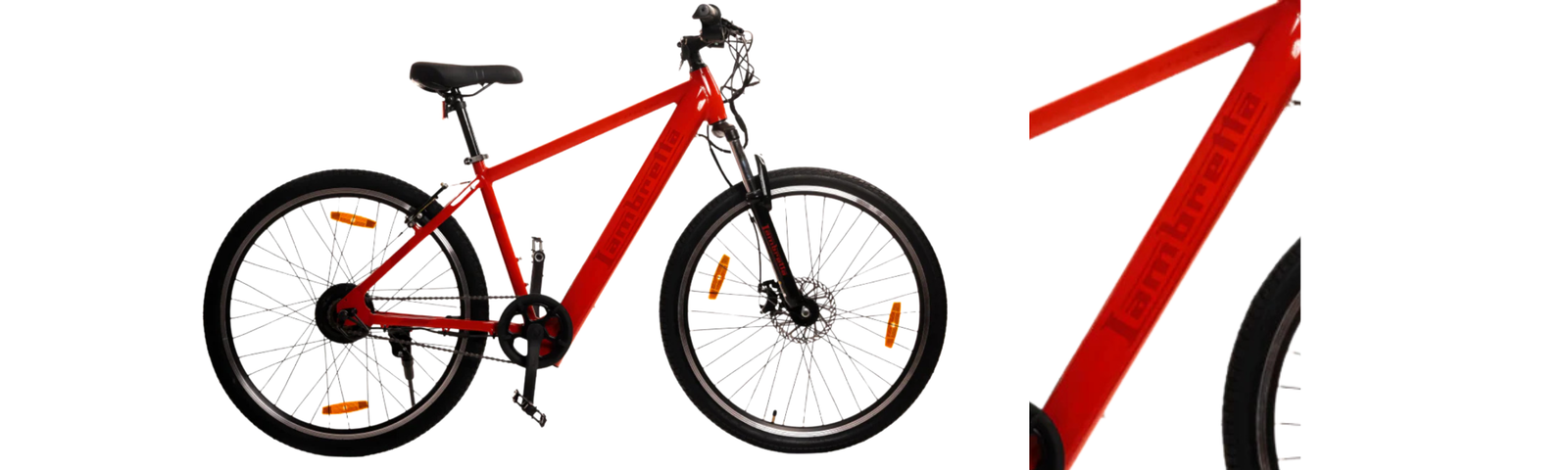 This Alloy frame is lightweight and comfortable to ride. The concealed battery is neat and along with the shining matte finish paint job which makes the Electric Bicycle look aesthetic. The 3 level assist, throttle and the extra cushioned saddle made the electric riding experience comfortable and enjoyable. The 27.5” x 1.95” Ralson tires were fast rolling on smooth and rough urban roads. Priced at Rs.49,5 (as on 31st March 223) the Lambretta Electric is an ideal choice for anyone looking to buy an Electric Bicycle for fitness, leisure rides and commutes.Prices and Specifications/Components are subject to change by the brand, without due notice.