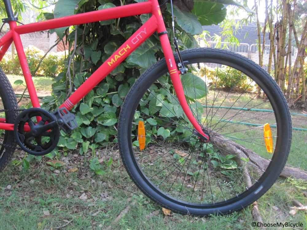While it is a functional and simple bicycle, Mach City have always come out with various colour variants for the iBike. This year the Mach City iBike Single Speed comes with 27.5” wheels, which by itself makes the bicycle look taller and bigger. The bicycle I test rode came in a bright red colour with yellow graphics. The matte finish paint job is the most exciting and new feature in the iBike this year. The matte paint job quality was top notch and for sure gave a new outlook to this bicycle. The bottle cage eyelets, front wheel and set post quick release levers are good design additions, which are functional as well.