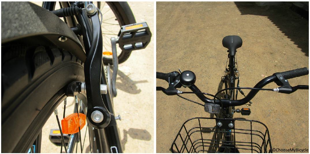 The Mach City iBike W 7 Speed comes equipped with alloy V-brakes that offer adequate stopping power for city usage. However, the brakes are not as effective when riding on wet and slippery surfaces and require some extra force to bring the bicycle to a complete stop. The 58mm handlebar on the iBike W 7 Speed, has an upward curvature (i.e. a bird type steel handlebar) and ensures a comfortable, upright riding position. The width of the handlebar allows for superior control and maneuverability in crowded riding conditions. The handlebar grips were on the harder side, which might affect cyclists using the bicycle on longer duration rides.