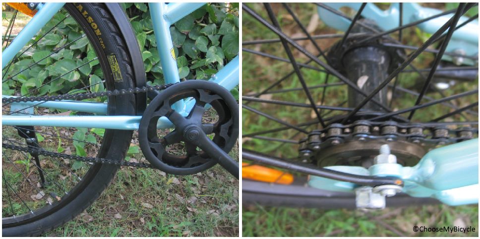The 26'' x 1.95'' Ralson tires that come with the Mach City iBike W Single Speed are sturdy and could possibly be why this bicycle can be used on simple trails apart from the city. The front wheel is fitted with a quick release, which makes removing and putting the wheel back on much simpler. The thicker width of the tires makes the bicycle more stable and balanced on bumpy surfaces.This bicycle comes equipped with a comfortable foam saddle that is wide enough to comfortably accommodate one's sit bones. Additionally, the seat post has a quick release option, making adjusting the height of the saddle easier on the go. The overall ride quality was pretty smooth and favorable, especially considering the bicycle is aimed at city rides.