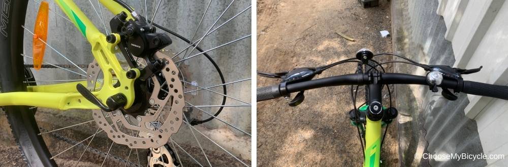 The Shimano MT2 Hydraulic Disc brakes were powerful and balanced during the test ride. These brakes are the best in line that can be found on MTB's at this price range and makes this bicycle capable of handling the wettest and roughest of trails.The Merida CC 69mm handlebar was wide and comfortable to hold on to but like the previous year the 219 edition also has a 15mm rise. A fully flat handlebar would have made the riding posture aggressive, aligning with the aggressive frame geometry.
