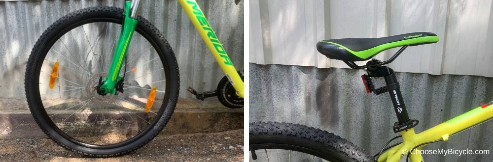 The Merida Big Nine 15 rolls on a pair of stock Merida K18 29” x 2.2” tires. These tires were treaded heavily and perfectly suited for the rough and wet trails. High-speed turns and jamming of the brakes were transformed well into a balanced reaction on these pair of tires.The Merida Sport Comfort stock saddle was shaped ergonomically with the perfect length and width. The grip patches on the widest part of the saddle on both sides were useful and made it non-slippery. The overall ride quality was fast and comfortable on trails.