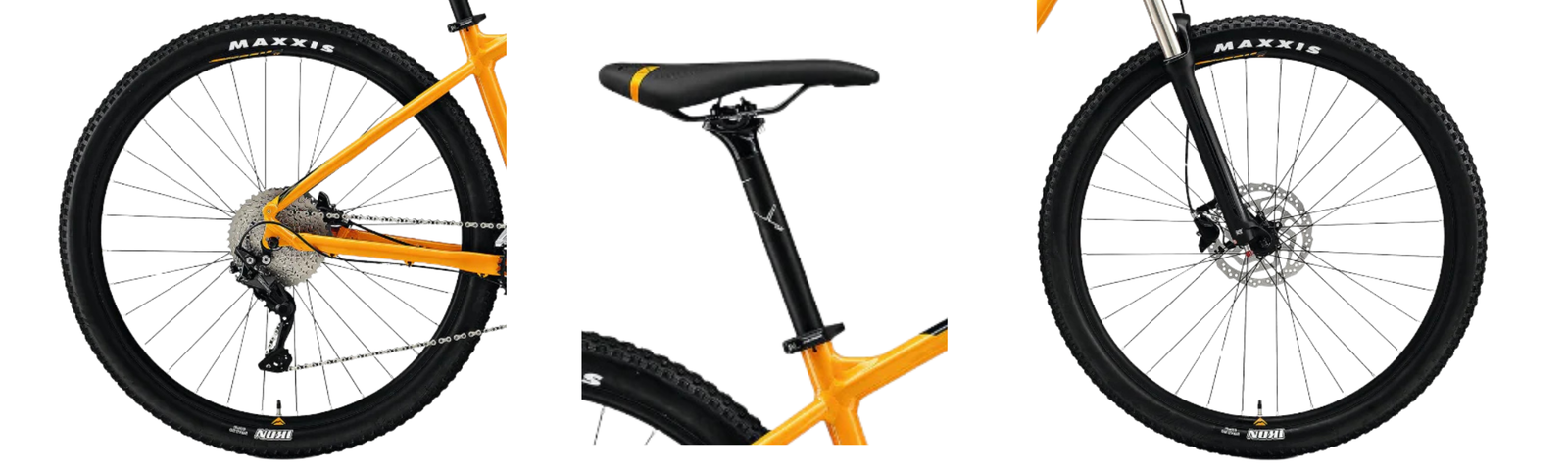 Fast-rolling wheels and a comfort-tuned saddle for all-day trail performance.