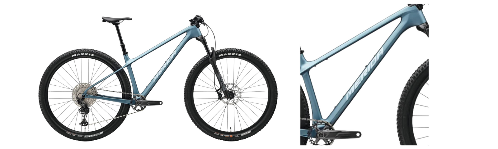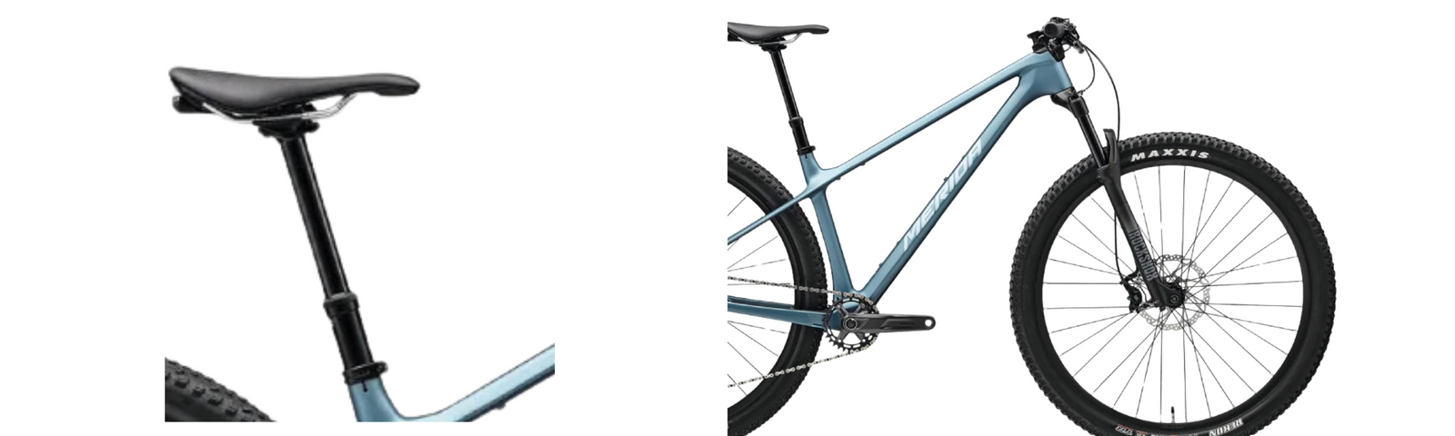 Hardtails are always a compromise on comfort, but Merida has done a lot here to reduce the harsh edges. The wide 2.4-inch tyres, flex stays in the rear triangle, and somewhat relaxed chainstay design help absorb trail chatter. The lower stand-over combined with a dropper seat post gives the rider a more comfortable, confident position off descents. The seat post travel (150 mm on S/M, 170 mm on L/XL) offers plenty of adjustment.