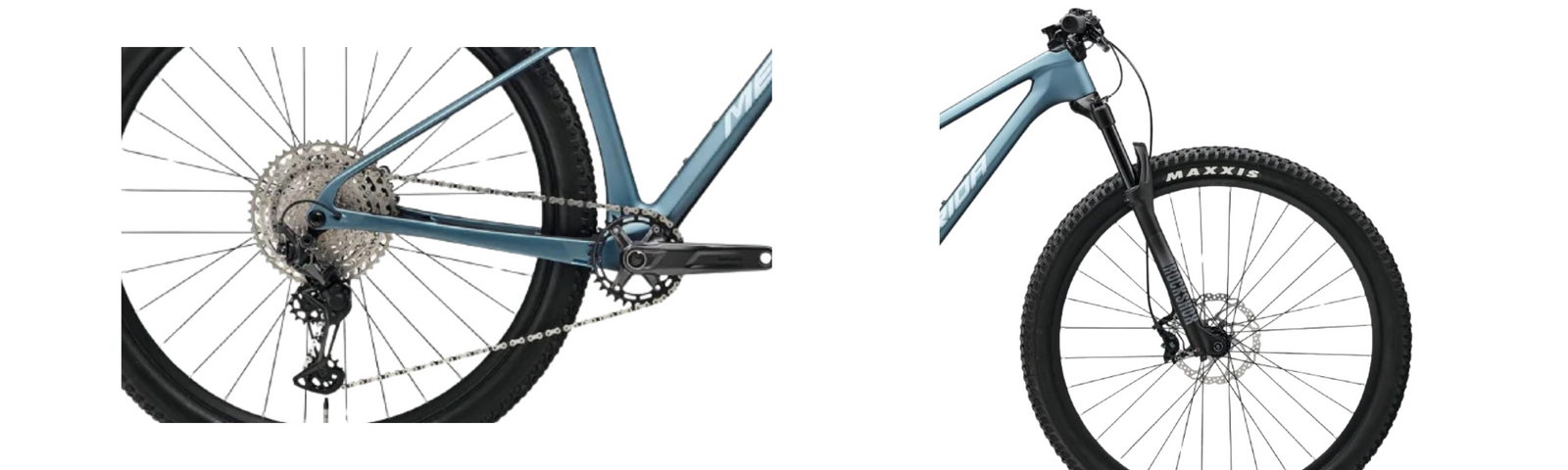 Wheels and tyres are strong points. Merida’s Expert CC II aluminium rims are tubeless-ready, paired with Maxxis Rekon / Rekon Race tyres, 29×2.4", offering good traction and a forgiving ride. The hubs are Shimano TC500 front & rear, with boosts spacing, supports stiffness and durability. Spokes are double-butted stainless steel.