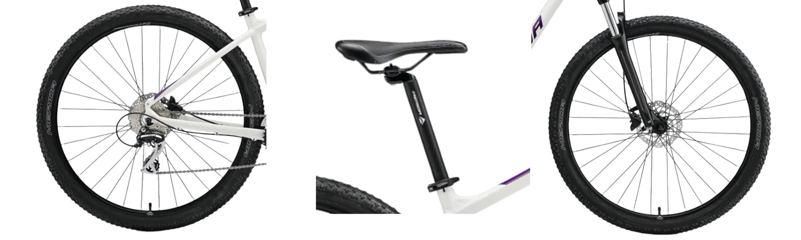 The Merida comfort saddle provides balanced cushioning and support, ideal for long fitness rides or weekend trail sessions.